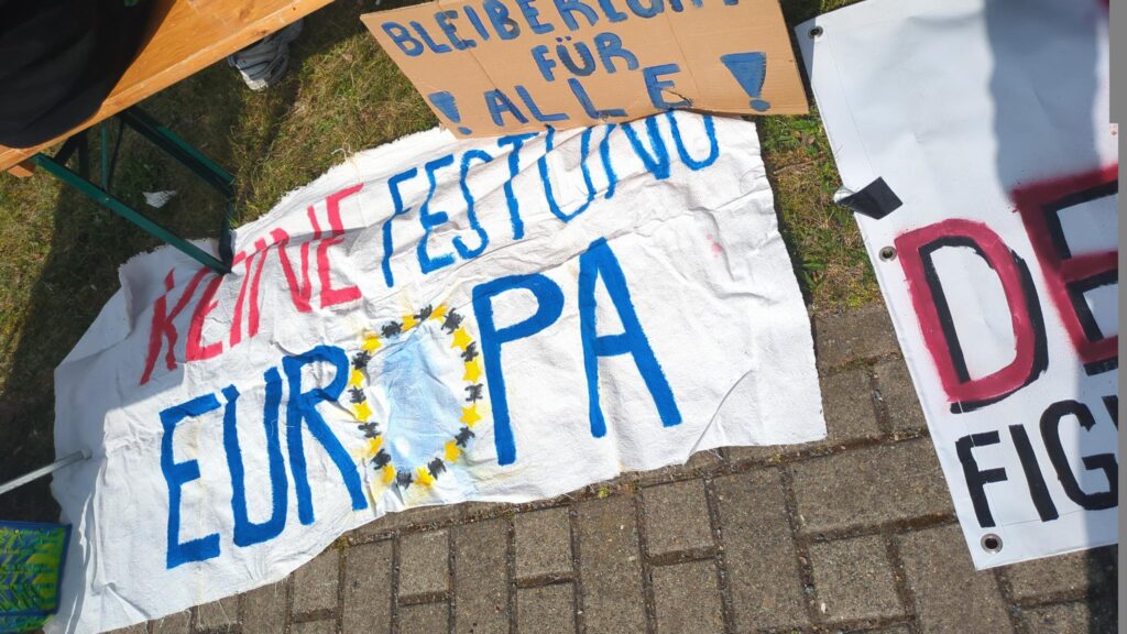 Darum wurde zu europaweitem Protest aufgerufen. Wir sind eine Aktion von vielen in der ganzen EU. Wir wollen gemeinsam und europaweit protestieren. Gegen Rechtsruck. Gegen Festung Europa. Gegen die GEAS Reform.